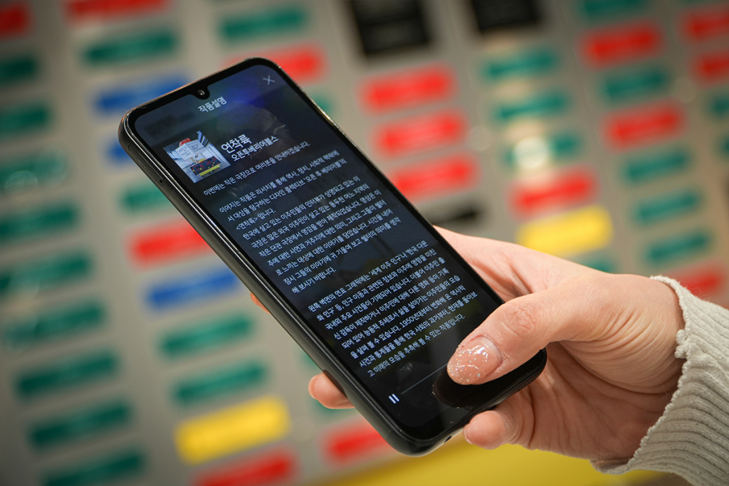 관람객이 각 작품에 근접하면 자동으로 위치를 인식해서 작품의 해설을 나만의 속도로 자유롭고 편리하게 전시관을 이용할 수 있도록